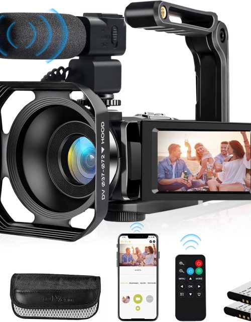 4K Video Camera, Camcorder 48MP Ultra HD WiFi Vlogging Camera for YouTube 18X Zoom 3.0″ Touch Screen Digital Camera with Microphone, Stabilizer, Lens Hood, Remote, 2 Batteries