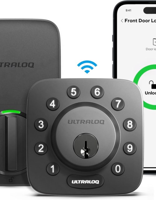 Smart Lock, ULTRALOQ U-Bolt + Bridge WiFi Adaptor, 5-in-1 Keyless Entry Door Lock with WiFi, App, Bluetooth and Keypad, Locks for Front Door, Deadbolt, ANSI Grade 1 Certified – Black
