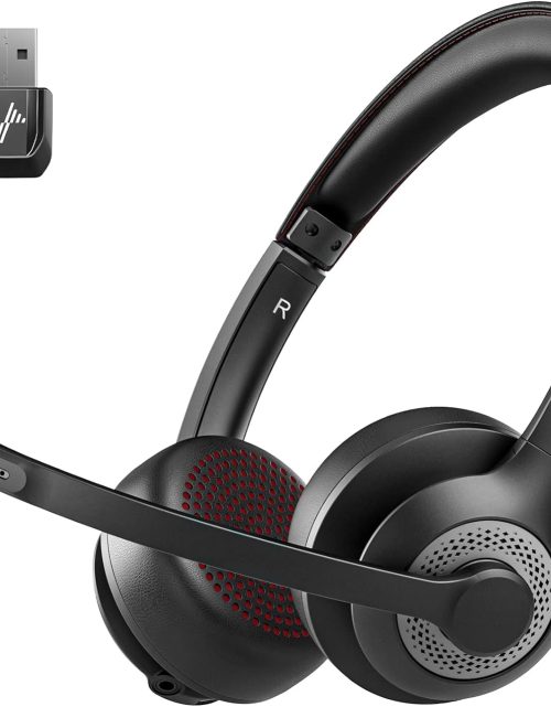 Wireless Headset with AI Noise Cancelling Microphone Bluetooth Headset – Bluetooth V5.2 Headphones with USB Dongle & Mic Mute for Computer/Laptop/PC/iPhone/Android/Cell Phones (Bluetooth+USB Dongle)